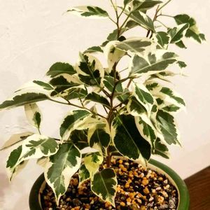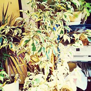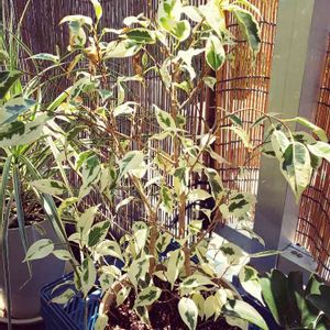 数年前から室内で育成していて、ジワジワとちょっとずつ大きくなっています。 最近、これがベンジャミンのスターライトだと知りました。てことは、強い光線が好きなのかな?