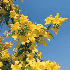 カロライナジャスミン🌼 青空の下鮮やかです😊