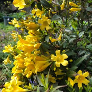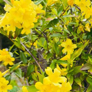 こちらは初めて出合ったお花で、検索したところカロライナジャスミンという名前でした💛😚💛 ラッパ状の花の形も可愛いし、こういう黄色も素敵☺️💓