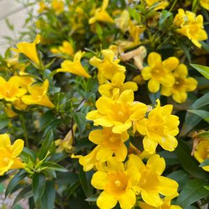カロライナジャスミン咲きました 甘い香りがするけど、ジャスミンティーにするモクセイ科とは違いマチン科には、有毒成分があり、超危険‼️ま〜お茶にはしませんけどね😄