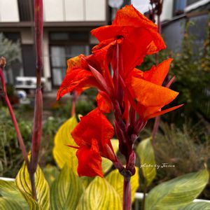 今日のお花 《カンナ》 毎日元気に咲いてくれます 大きな葉も魅力的な カンナ・ベンガルタイガー🐅
