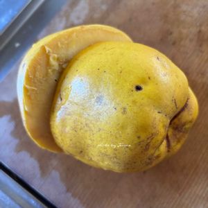 今日のお花 《カリン》花梨 大きなカリンの実が手に入ったので はちみつ漬け🍯を作りました カリンはとても固くてカットするのに力が要りました