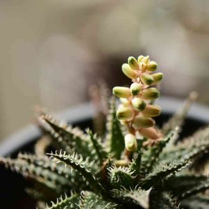 花芽が伸びてきた。 ハオルチアとアロエの交配種、 ディンデリー。 2つの鉢、一緒に咲きそう。