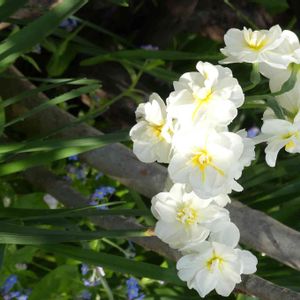 🤍香り水仙 芳香八重咲き サーウィンストンチャーチル✨ (イギリスのチャーチル首相の名前の水仙) はじめての⁉︎ 水仙の香り𓂃܀* クンクン(˘͈ᵕ ˘͈♡)✨ 🤍フリッフリで可愛く咲いてくれました (๑˃̵ᴗ˂̵)嬉✨ この子🤍どうしてなのか⁉︎ ︎あっち向いてホイッで後ろ向きで咲き(球根の植え付け向き間違ったのか?) 思っていたより背高さんで 度々の強風を受け自立が難しくなってしまったので倒れないように紐で結んで支え合ってます(´・ᴗ・`;) モリモリだった 華あられ&アリッサムは元気がなくなってしまったので一緒のpicが撮れず残念💦 ダブルデッカー思ったようにいかないなぁ(¯―¯٥) なので 🤍サーウィンストンチャーチルさんの華やかなpicになりました(๑˃̵ᴗ˂̵) ˖*♬೨̣̥ ◡̈*