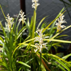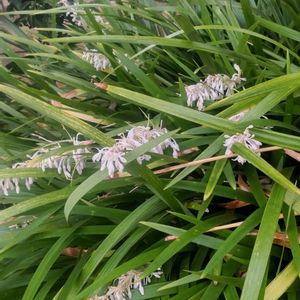 今日の母の庭1️⃣ ①ノシランが咲き始めました。 ②ニラももう少しで開花です。