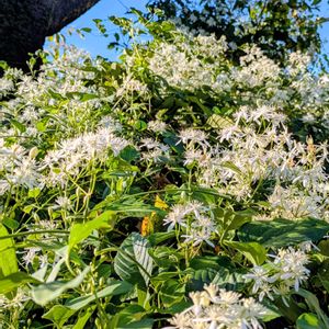 センニンソウ いっきに花開き♥️ ノシランも咲き始め トレニアは鉢から 零れそう 風は秋の風 でもね、空は真夏 只今サンシェード内 34.5℃。外はたぶん37℃ ほんとの秋いつ 来るかなぁ😅 白い水曜日♡ 参加させてね♥️