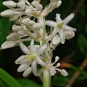 🪴草花たち ノシラン(熨斗蘭) 前線が南下したので天気予報に傘マークがついているものの 最高気温は相変わらず例年より高い30℃超えがあちこちの日本列島です そんな暑さも忘れさせてくれる白い花〜 ノシランの蕾は涼しげです ° ✧ (*´ `*) ✧ ° 。.:*·゚ ✽. 🏷白い水曜日♡ (さっちゃんさん主宰) 🏷️素敵な出会いに感謝 ☀️ *・゜゚・*:.。..。.:*・🌳✨'・* :.。..。.:*・゜゚・*
