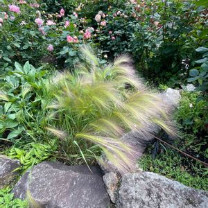 ラインが綺麗な、種まきっ子ホルデュームジュバタム♡ こういうグラス類があると良いアクセントになりますね☺️✨✨ 発芽率高め、肥料要らずで水遣りも控えめ、種まき初心者には嬉しい植物です⤴️ 地植えに向きそうだけど、うちでは鉢植えの方が育ちが良いです👍