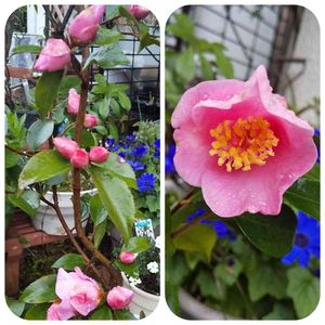 やっと咲き出しました🤗 香り椿「港の春」 優しいピンク 香り?🤔・・・・🤷