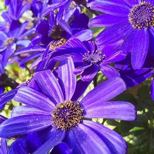 ペリカリス(シネラリア) 我が家に来てから40日程 見応えある姿になったプリマブェーラ 朝日に輝いています🎵