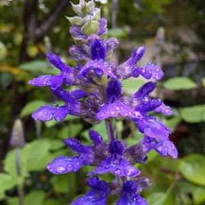 サルビア ミスティ一番咲き また雨…… 雫💧を湛えた貴女は貴婦人 今から次々と咲いて下さいませ