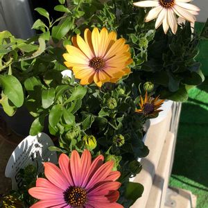 新しく仲間入りした、オステオスペルマムさん三色❣️ クリーム色のアリッサムさんと一緒に、寄せ植えにする予定です😊