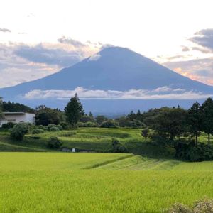 今日の富士山🗻 田んぼの黄金色が一面に広がって、もうすぐ稲刈り🌾 (2021.8.24. 18:06 小山町阿多野より)
