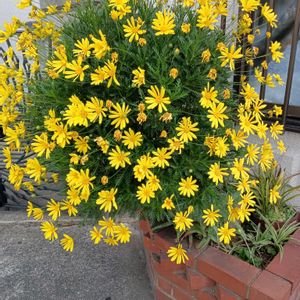 お庭のユリオプスデージー 元気色の黄色が鮮やかで、綺麗に開花しました✨️💛💛💛💫