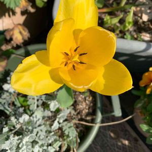 2023.4,1 おはようございます😃 新年度の始まりですねぇ😘 見切りで一個残ってて数年前にhcで50円買った球根のチューリップ咲きました。