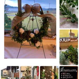 2022.12.7 4日にクリスマスリースのワークショップ に参加。 目の前は、稲刈りの後の畑で黄金色 最高のローケーション ムクゲアカシアを初めてみて感激