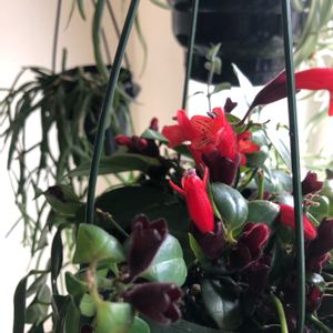 エスキナンサス モナリザのお花が咲きました❤️ エスキナンサスのお花は マルモラタスが咲いたことあるけど 緑色の地味な花だったから 真っ赤で派手な花が見られて嬉しいです😊 2月もよろしくお願いします(*˘˘*)
