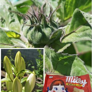 1️⃣ ご近所さんのノコギリソウ 🏷今日のお花 2️⃣ 金曜日に蕾だったひまわり🌻 枝咲きチョコレートひまわりと 赤ちゃんひまわり、 昨日曇天の中咲きました 今日はあめ〜🌧️ 週間天気も☀ないな… 蝦夷梅雨だな… 🏷日曜ビタミンカラー♪ 3️⃣ 夏になると至る所にコイツが… 軽く2mは超える高さにも💦 厄介者です