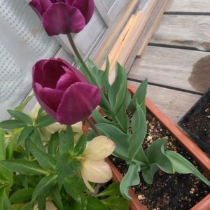 まもなく役目を、終えてしまう。チューリップ🌷百均で球根から育てました。百均だから、ちゃんと育つかな?咲くかな?って懸念しがちですが、食育とかお子さんの自由研究とかに、百均利用もおすすめですね😁