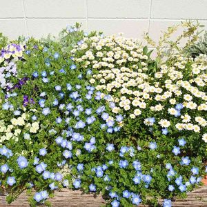 バンビさんから3/23の投稿後、花壇がどうなったか気になると声をかけていただいたので4/1の画像をアップしますね。 元は3月の真ん中あたりにあります。あの頃は手前のアリッサムも見えてましたね… その後、 ノースポールとネモフィラがものすごいボリュームになって、7種類10株ほどの植物が埋もれて見えなくなりました… これはこれで ひたちなかのネモフィラ畑を思い起こしていいじゃないか…と放置していたところに昨日今日の雨////☔ ネモフィラがすべてをなぎ倒してべろべろにしなだれかかってしまいました(;_;) それで今日、剪定どころか伐採レベルにネモフィラを切り、花がら摘みもできていなかったビオラを一部切り戻しましたが、1時間かかってもごく一部しかできませんでした(;_;) かきわけるのも、傷んだ下葉をとるのも難儀だったんです。 明日も、もともとビオラ畑だった初心に還る作業をしようと思います。 ネモフィラは、ほぼ丸坊主の刑です。自分で蒔いた種なのに…←まさに言葉通り 懺悔代わりに、本日の刑の執行4日前、平和だった写真を記録しておきます…(この翌日ノースポールの中に白いチューリップ、左上にフリージアが咲きました。撮っても見えないから同じだけど(*_*))