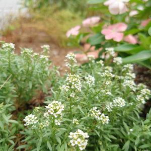 足腰ヨレヨレ気味でぼさぼさ放置状態の花壇ですが、お水ももらってないのにアリッサムががんばっています(゚ロ゚)ビクーリ