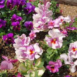 【アドバイスお願いします】昨年末に植えたビオラが衰える様子がなくて、引っこ抜くにはしのびないです。 でも夏から秋にかけて咲くお花の花壇をつくるには、ビオラが終わるのを待たずに(そろそろ今?)ビオラをやめて植え替えたほうがいいのでしょうか。 どなたかアドバイスお願いします! 時折外泊で不在にするときに水やりを人に頼まないので、ビオラの夏越しは無理と考えています。鉢植えも水切れの不安から、鉢に避難させるのはしないつもりでいます。 7月くらいまでビオラが咲いてしまった場合、その時点で新たに植えられて、秋まで咲くお花はあるでしょうか。 それとも心を鬼にしていまビオラとさよならし、夏のお花に植え替えたほうがいいでしょうか。 花壇にこんなにお花を植えるようになったのは去年からなんです。 去年は今ごろに泣く泣くビオラを引っこ抜いて、ペンタス、青サルビア、ニチニチソウ、ひまわりなどを植えましたが、 株間をあけすぎてスカスカな花壇になりました😭 どのお花がどのくらいの高さやボリュームに育つか、株間はどのくらいが適切かなど、説明書を読んでも予想外になってしまって難しいです😭