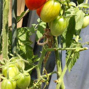 敷地続きの水路端に11本のミニトマト、鑑賞も兼ねて植えました。 先端の芽を摘んでも伸びるので、横に横に誘引しています。 春先に菜園に植えた苗からの脇芽を、水挿しから発根させて植えました。 幅3メートルにいっぱいのミニトマト‼️菜園のはもう終わりに近いけど、3日に一度完熟🍅の収穫です‼️ 買ったら10パックは有るかな?それ以上かも? ママさんに渡すと大喜び😆 「ウワッ凄い量!もう高いからこんなにいっぱい助かります。ばば有り難う。3日で終わるよ!」😆 丁度良いサイクルの収穫と消費です☺️ 私は草取り中や水やりの時、パクッと食べたり、ヒビ割れのダメな部分を🔪除き🥗に乗せて食べてます😋 完熟は甘ーいです‼️