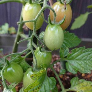 おはようございます☁ わが家のミニトマトアイコと、中玉トマトフルティカが、なりました🎵 早く熟すといいな😂