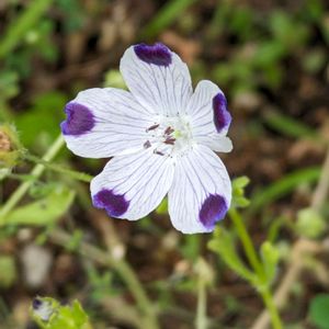 この子も 河原の道端で会いました。 何処かの庭から逃げて来たのかな🤗 「モンカラクサ」(ネモフィラ・マクラータ)