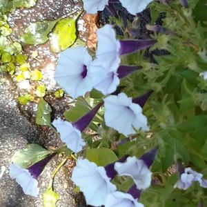 クリスタルとサフィニア😱😱😱 溢れ種がいつの間にか発芽して咲いていた😲💦 でもこの色の花植えたの5年前なんだよなぁ… 使い回しの土に種が紛れてたのかな?