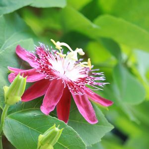 【頷き姫芙蓉】《アオイ科》 花言葉 「優しい感受性」 別名 タイリンヒメフヨウ(大輪姫芙蓉) 蕾のときは上を向いており 開花すると下向きになります。 花の咲き方は 同科異属のハイビスカス(Hibiscus)の花が閉じた状態と 似ており、 全開せず半開のままです 花弁の間から蕊を突出させます