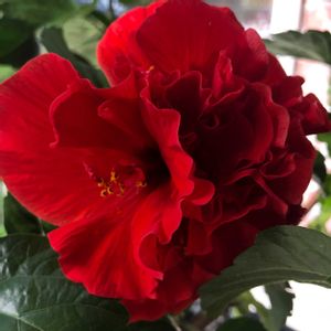 🏷️ 真っ赤な火曜日。 ハイビスカス🌺𓈒𓏸 今日も咲いてくれてます。 (๑´ロ`๑)~♪❤️ ❶ハイビスカス八重咲き。 ❷ハイビスカス、サマーキング。