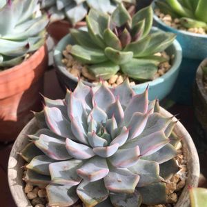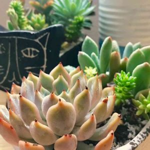 おはようございます😃 まだお部屋に避難中の多肉たち。 先日やっと出会ったピンクザラゴーサ💕 爪はピンクだけど ほとんどミドリンです…