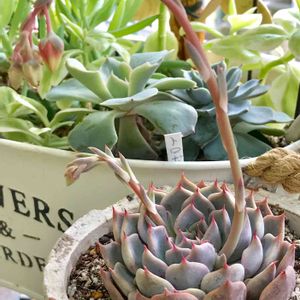 エケベリアの花芽ラッシュ① エケベリアさん達の花芽がすごい事になってますヾ(๑⃙⃘´ꇴ`๑⃙⃘)ノ もう少し暖かくなったら、お一人様の予定です¨̮♡ それから先日、HTCとバラと夢CLUBに入部いたしました(◍˃̶ᗜ˂̶◍)ノ" 皆さん仲良くして下さい。ヨロシクお願いします😊💕