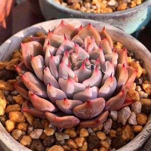 【エケベリア ピンクザラゴーサ】 先日、ようやく見つけて狩ったピンクザラゴーサ✨ ほんのりピンクと、爪がイイわ〜☺️ まだ小さいけど、大きく育てー‼️