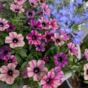 わが家のペチュニア達もそろそろやる気スイッチが入ってきたようです😁 ①②小輪ペチュニアマルベリー 初めて育ててるけど優秀🎖️ 苗の状態からすでに大きくて立派だったけど、満開はすごいです😍 1回目の満開の時は形がイビツだったので何度か切り戻して形を整えたらギューギューの爆咲き💕💕 ③ペチュニアさくらクルール teftefさん✕花日和✕タカザワフラワーファームさんトリプルコラボのレアペチュニア✨ きっちり形を整えずナチュラルな雰囲気のかご植えです🧺 すごくおしゃれです😆 ④インカのペチュニアサルカンタイ 桂楓園さん✕タカザワフラワーファームさんコラボのペチュニア✨ しっかりとした茎に八重咲きの爽やかなお花が素敵なペチュニアです🥰 サルカンタイってなんだ?って思って調べたら秘露の山だそうです🏔️ 万年雪と氷河を湛えた美しい山、このお花にピッタリ💕 このペチュニアもナチュラルな雰囲気です😁 ⑤タカザワフラワーファームさんの試作品ペチュニア 薄ピンクの小さめなお花がかわいい😍 株もしっかりとしています✨ 少し暴れ気味なのできれいに切り戻しをしてあげて満開に咲かせたら素晴らしくなるはず😍 暑すぎて今までペチュニア達を放置気味です💦💦 花がら摘み、切り戻しをそろそろしてあげなきゃなー😅
