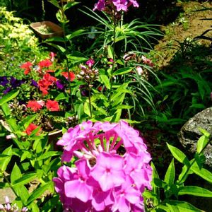 このプリムラの花のような集合体のお花の名前ってなんでしたっけ⁇ 他に白い花も咲いていました。 去年も見て調べたのですが、、、、思い出せません😰 フロックスかな? 判明しました💡 宿根フロックス 別名 オイランソウ(花魁草)