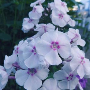 フロックス クリームドミント💖 満開になりました❣️ 斑入りの葉っぱ🌿がお気に入り☺️ 今日は暑過ぎて、 昨日買った花苗が植えれなかった😂💦 庭と鉢植えにお水をあげるのが精一杯😑…。