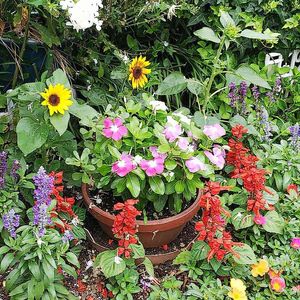 コミュニティ花壇 久し振りの恵みの雨☔️ 花壇の花々も生き生きと嬉しそう~♪🤗💕✨🎶
