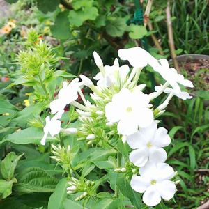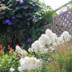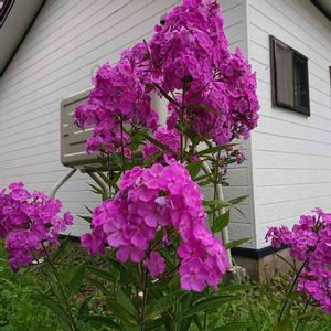 お嫁に来た年にも咲いていました。夫に尋ねると子どもの頃からあった、と。夫60代です。義母にオイランソウだと教わりました。背丈150センチ、この昔からの姿は宿根フロックスではなくクサキョウチクトウでもなくオイランソウが似合っているように思えます。