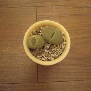 リトープス属ホルニーさん🍄 我が家のリトーズは 気難しい子が多い… 脱皮しきれずに包まれたまま 旧葉が完全に枯れてます😭
