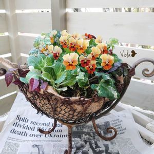 もうボロボロなアイアンのスタンドだけどお気に入りだからどうにか工夫して使い続けてます。勿体ない病ってやつでしょうか🤭 エボルベを使って寄せ植えました😊 1株で大きくなりそうなのでビオラは1つだけ。エボルベは今年も可愛い❀