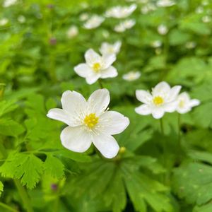 ニリンソウ(二輪草)✨ 今年も沢沿いで咲き始めました🎵 キンポウゲ科イチリンソウ属 多年草 花期・4〜5月 花の裏がほんのりピンクで可愛いです💕
