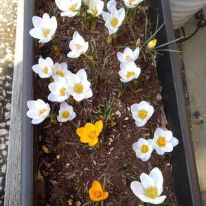 またまたクロッカスですが、 初めてわかった😲 クロッカスって、花の色ごとに咲く順番があったってこと。 白、薄紫、黄色、紫の順に咲いています。 確かに色とりどりの球根でした。 疑ってごめんなさい。
