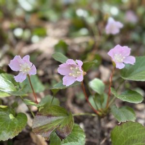イワウチワ(岩団扇) 花びらがフリルのスカートのよう 蕾は濃いピンク色です🩷 登山道の両側に咲いているのを見ると急登も頑張れる٩(^‿^)۶
