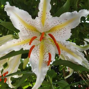芦ノ湖 ヤマユリ(山百合)、ユリ科リリウム(ユリ)属の球根植物、多年草、別名 ヒャクゴウ, ヨシノユリ, エイザンユリ, ホウライジユリ 🌸日本固有の百合 🌸学名 Lilium auratum Lilium は「黄金色のユリ」の意 🌸神奈川県の県花 🌼花言葉 「高貴な品性」「飾らぬ美」「純潔」「荘厳」「威厳」「甘美」