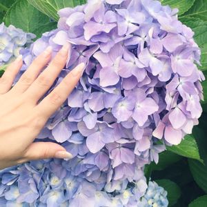 紫陽花の名所にて(*´꒳`*) あまりの大きさにびっくり‼︎(´⊙ω⊙`) 大きさを伝えるのに 私の手を添えてみたw