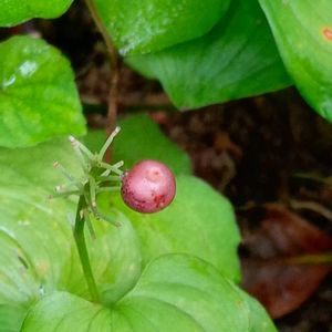 マイズルソウ(舞鶴草)の赤い実。 沢山の花が咲いていましたが、実が付いてるのは、ほんの少しでした😀🔴❤️