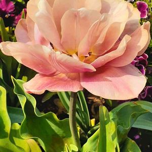 大輪のチューリップ(ベルエポック) 蕾を見ても?でしたが葉っぱを見ると… チューリップ🌷でした 訂正です🙇🙇🙇 蕾はアリウムでした💦 スタッフの方々に伺いました😀