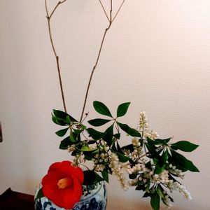 絞りの椿が最近は単色になってしまいました 馬酔木はそろそろ終わりみたいです